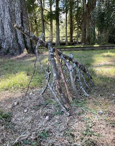 At Camp Adair, in the night, the moon is like a torch as the Moreporke sounds the alert, crickets chirp to mark the hour, trees sit silently as they gaze at the stars which twinkle like a large hand had tossed diamond dust into the sky, as soon as the moon hides behind a cloud it becomes black as night,