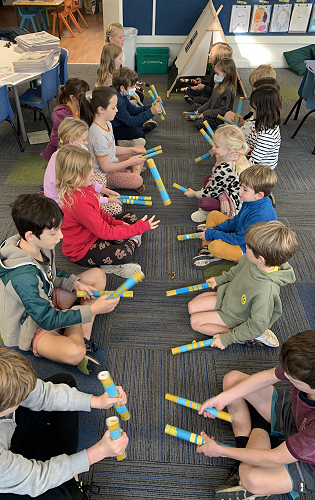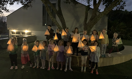 On Tuesday the whole school gathered into whānau groups along with some parent helpers and participated in two Matariki or Maori themed activities for the morning. The children enjoyed making beautiful painted Matariki rocks, learning rakau sticks games, paper craft and weaving. On Tuesday evening we held a lantern making workshop with support from Lance Cablk from Restoring Takarunga Hauraki and Natanahira from Lake House Arts. We had great whānau participation and constructed some beautiful lanterns made out of bamboo and paper covered with designs from Natanahiras beautiful carved panels. The lanterns were taken by whānau up Takarunga on the hikoi on Saturday night. What an awesome community event!Classes also enjoyed spending time with their buddy classes for some tuakana-teina which refers to the relationship and support given between younger and older children. Room 1, 2 and 7 made some very tricky traditional kites out of bamboo and flax, mīharo!