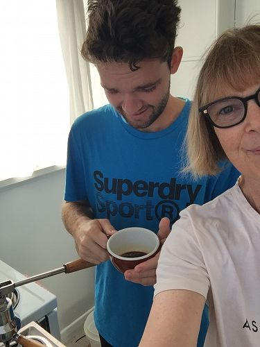 Mrs Stedman Rm2- has been using her time to catch up on reading and learning how to make the perfect cup of coffee with her son Alex.
