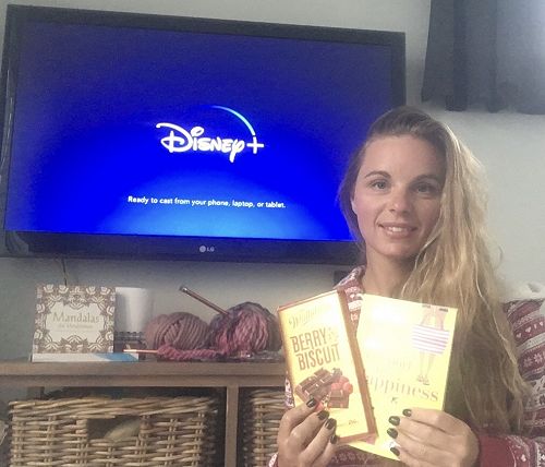 Miss Taylor Rm13- I am in lockdown with my favourite bar of chocolate, (which will be eaten within minutes) a good book, my knitting and a colouring book.