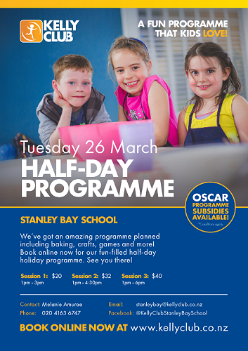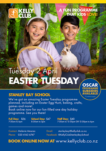 Kelly Club is available to help with child care for Parent Teacher Conferences (school closes at 1pm, 26 March) and Easter Tuesday (school closed all day)
