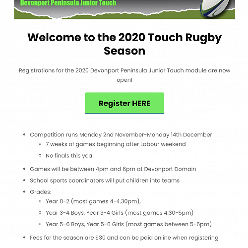 Visit this articleRegistrations for the 2020 Devonport Peninsula Junior Touch module are now open!