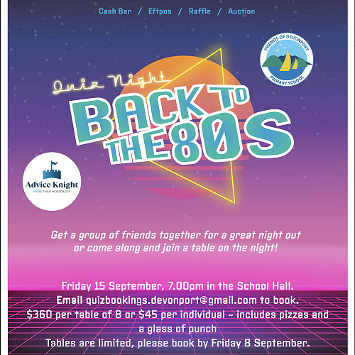 Visit this articleGrab your hairspray and truly outrageous costume, because you’re invited to Devonport Primary School’s QUIZ NIGHT!