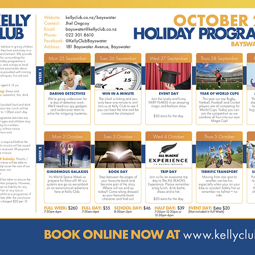 Visit this articlePlease see the attached timetable for the Kelly Club October school holiday programme.