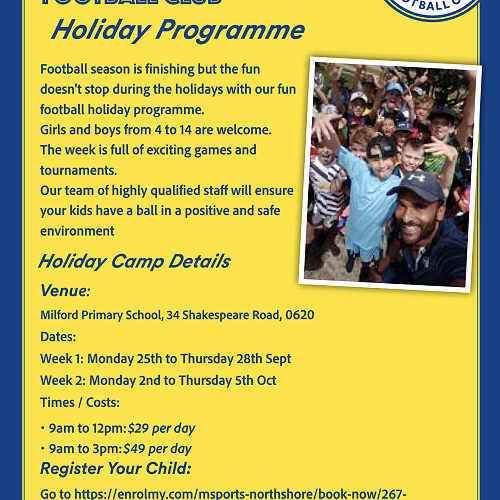 Visit this articleFootball season is finishing but the fun doesn't stop during the holidays with our fun football holiday programme. Girls and boys from 4 to 14 are welcome. The week is full of exciting games and tournaments. Our team of highly qualified staff will ensure your kids have a ball in a positive and safe environment