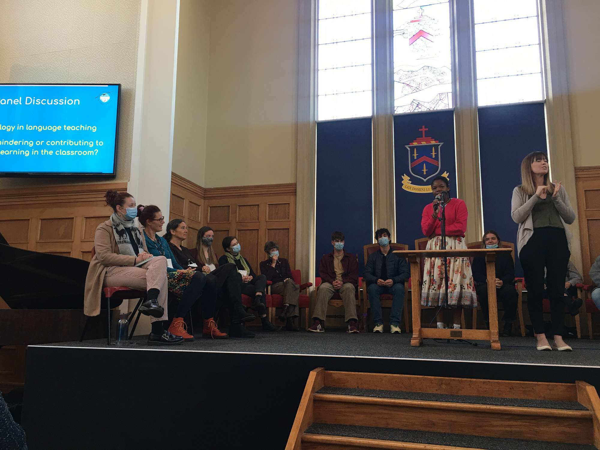 In the Term 2 holidays the NZ Association of Language teachers held their bi-annual conference in Otepoti. Anna Young (old girl) and Tunmise Adebowale, Y12 spoke about their experiences of learning Spanish and the advantages and disadvantages of technology in the classroom. Both young wahine responded to questions from the audience about their experiences and perspectives, and gave the 250 delegates an insight into how young people utilise technology.