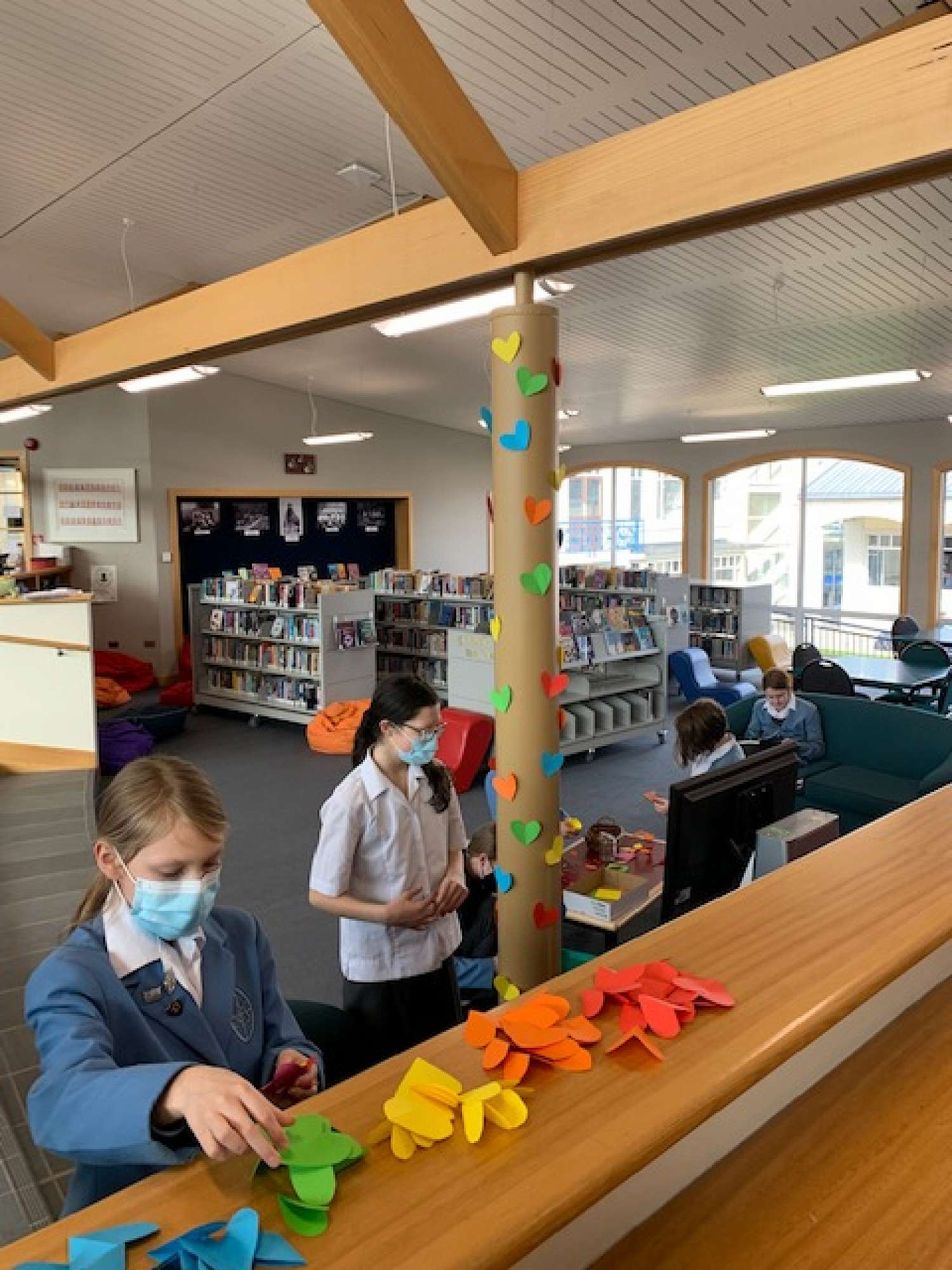 This month in the library, the focus has been on continuing to create a safe, inclusive space for all students to feel a sense of belonging. Our rainbow display, “A Book For Everyone”, has drawn attention with its colourful spine presentation, with students reaching out to explore the titles on offer. A splash of colour has been added to our pillars too, thanks to a group of dedicated and creative volunteers!