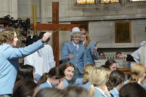 “In the Beginning …” After the Sacristans invited us to pause for a moment of confession, Sings Hilda sang ‘King of Love’ by Julie Knowles. The focus of the service then shifted to the area near the font, which was donated to the Cathedral by St Hilda’s students back in the early 1900s. There we heard about the beginnings of our school as told by students from the Improv Theatre group and the Dean.