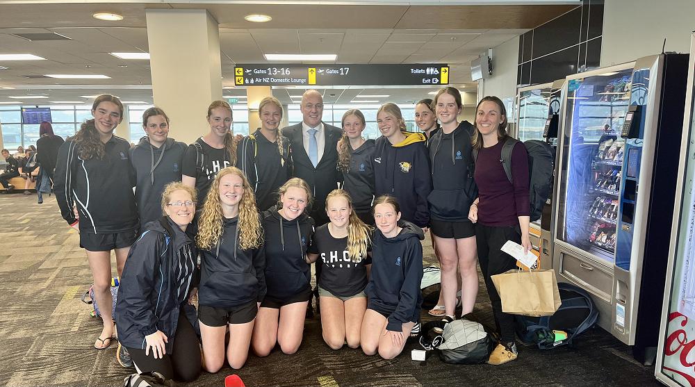 A big thank you to Ben van Heerden, our Coach and the terrific Tracy Havard, our Manager. Another highlight of our tour was getting to meet Christopher Luxon at Wellington airport, although this did not overshadow our victory against Columba.