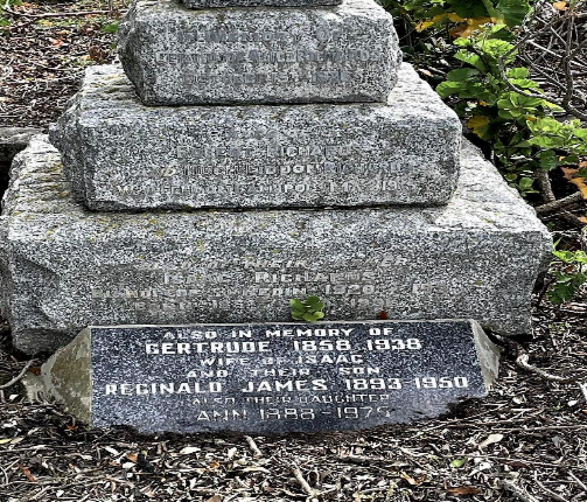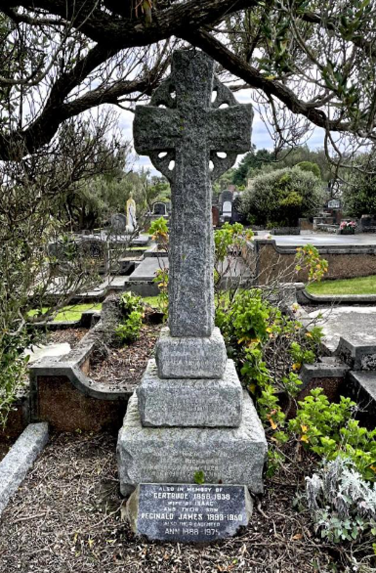 An impressive family indeed, with father and four of the children having a very close association with St Hilda's. Of the eight members of the family, five are buried in this family plot at Andersons Bay Cemetery, and the two boys killed at Gallipoli remembered. The only member of the family not buried here is Isaac Lionel, the youngest child, who became a minister. He died in 1962 and is buried in Christchurch.