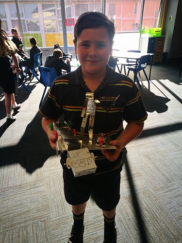 Kieran Watterston stands proud with his project he made in Hard Materials.