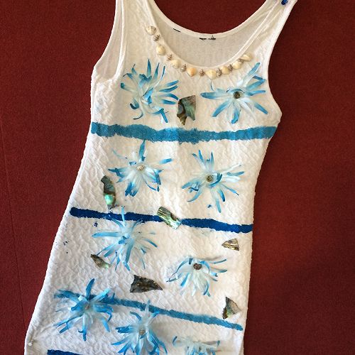Mia and Zara from Room 15 created a dress called 'Mermaid-Beach' at Wearable Arts