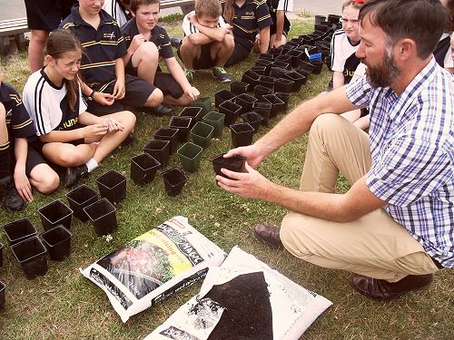 Mr Scoles showing students from Room 14 how to plant poppy seedlings. Room 14 are growing poppy plants so that they can pick 100 poppies and present them to 100 veterans on ANZAC day. It is hoped 100 students can help distribute the poppies. This is seen as a really genuine way for students to learn about our brave service personnel, the history behind the acronym A.N.Z.A.C, and Kiwis at war generally. It is also important for our children to learn how a flower was able to unite so many New Zealanders and Australians.