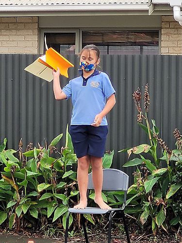 After 30 minutes of construction time the different aircraft were launched from a chair close to the senior playground. Here's some pictures of our tamariki putting their aircraft to the test.