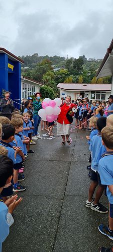 The children all waving off Ms Scholfield as she heads off to get ready for her Wedding day.