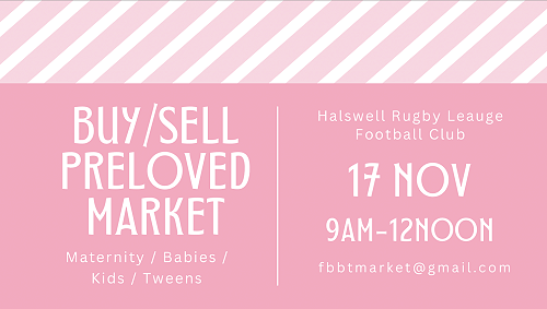 The 'From Bellies, Babies to Tweens' market is on SUNDAY 17 NOVEMBER from 9am-12noon at the Halswell RLFC, Halswell Rd.