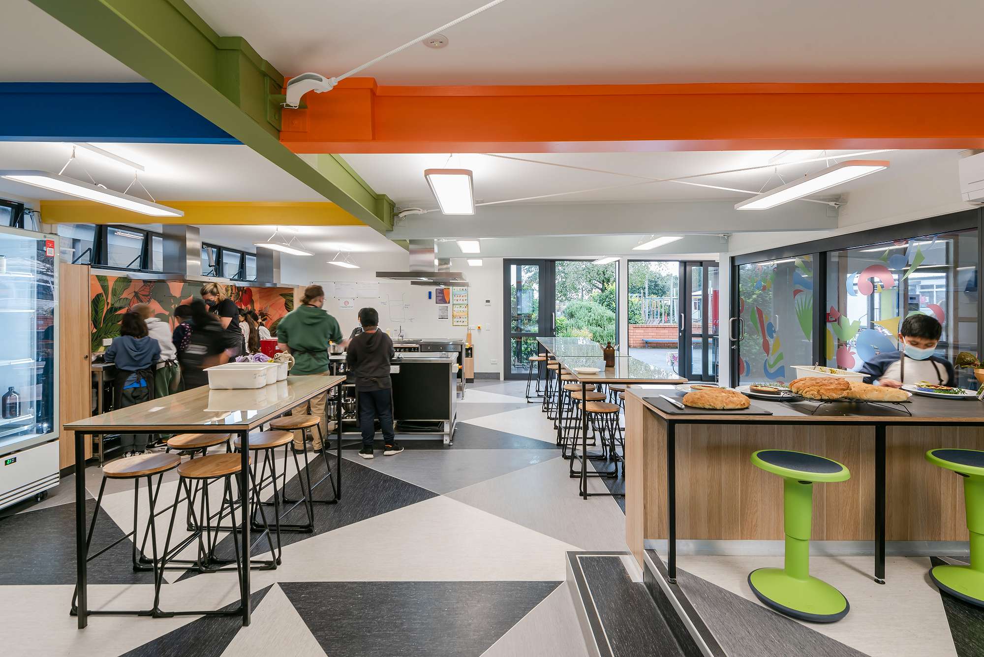This project is exemplary in repurposing an old facility and some otherwise unpurposed space in the centre of the school to provide ākonga and kaiako with creative learning spaces in which to engage in the school’s innovative pedagogical approach of combining sustainability, the environment, food awareness and social values. The Edendale Primary School Garden to Table project is a curriculum-based concept embedded in connecting outdoor and indoor areas. The programme provides colourful, flexible and flowing learning spaces. Ākonga are encouraged to learn core subjects and life skills through experiential learning in the garden and kitchen.