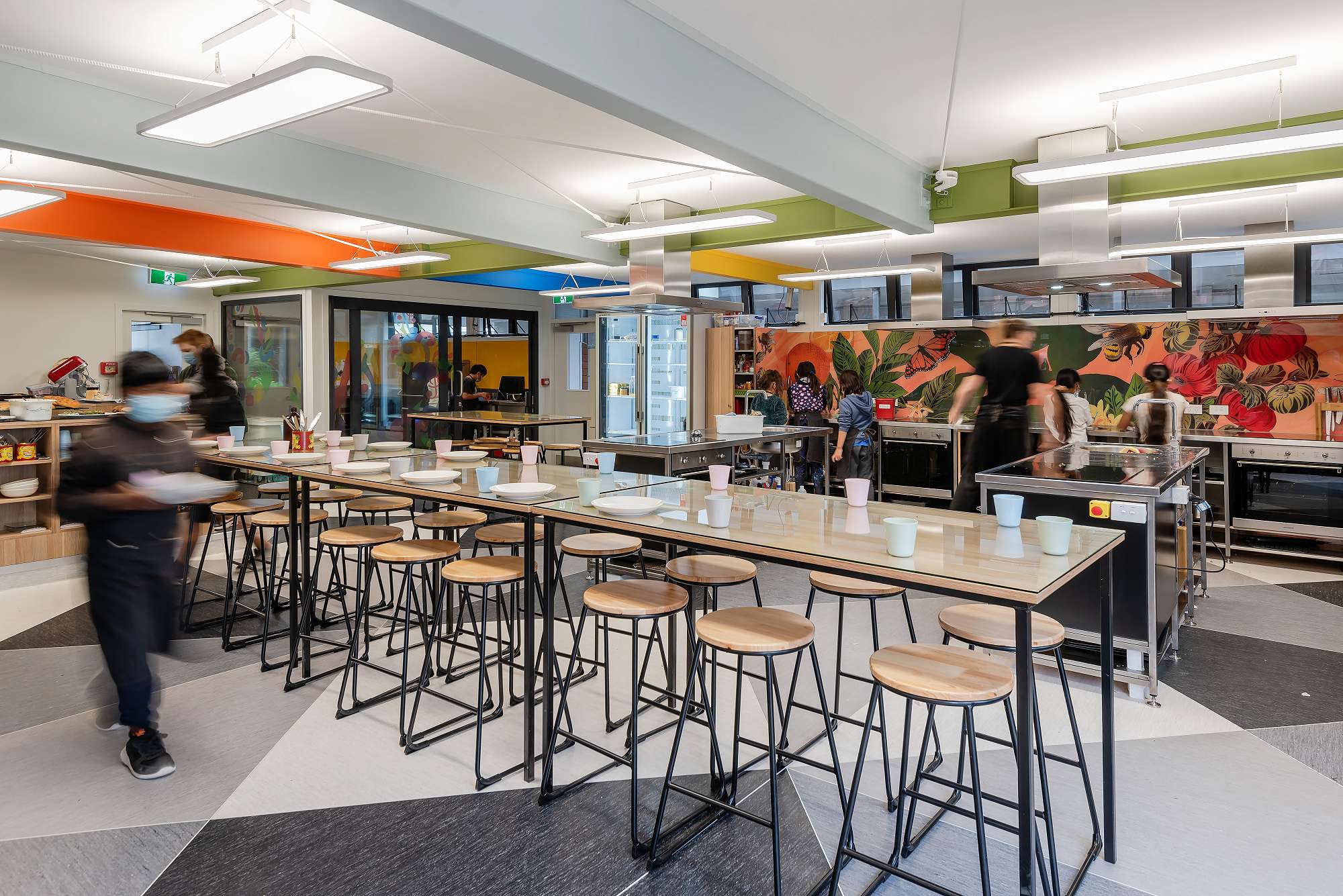Bringing his skills as a Chef in a previous career, Jonathan Jackson worked collaboratively with Jonathan Ramsay the Tumuaki, and the Ministry of Architecture charged with the rebuild design. We had a clear vision of creating an industrial, robust ‘real life’ facility, where ākonga could experience the authenticity of working in a cafe or restaurant. Our aim was to ensure ākonga could drive their learning, by working collaboratively in teams. To this end we designed for: