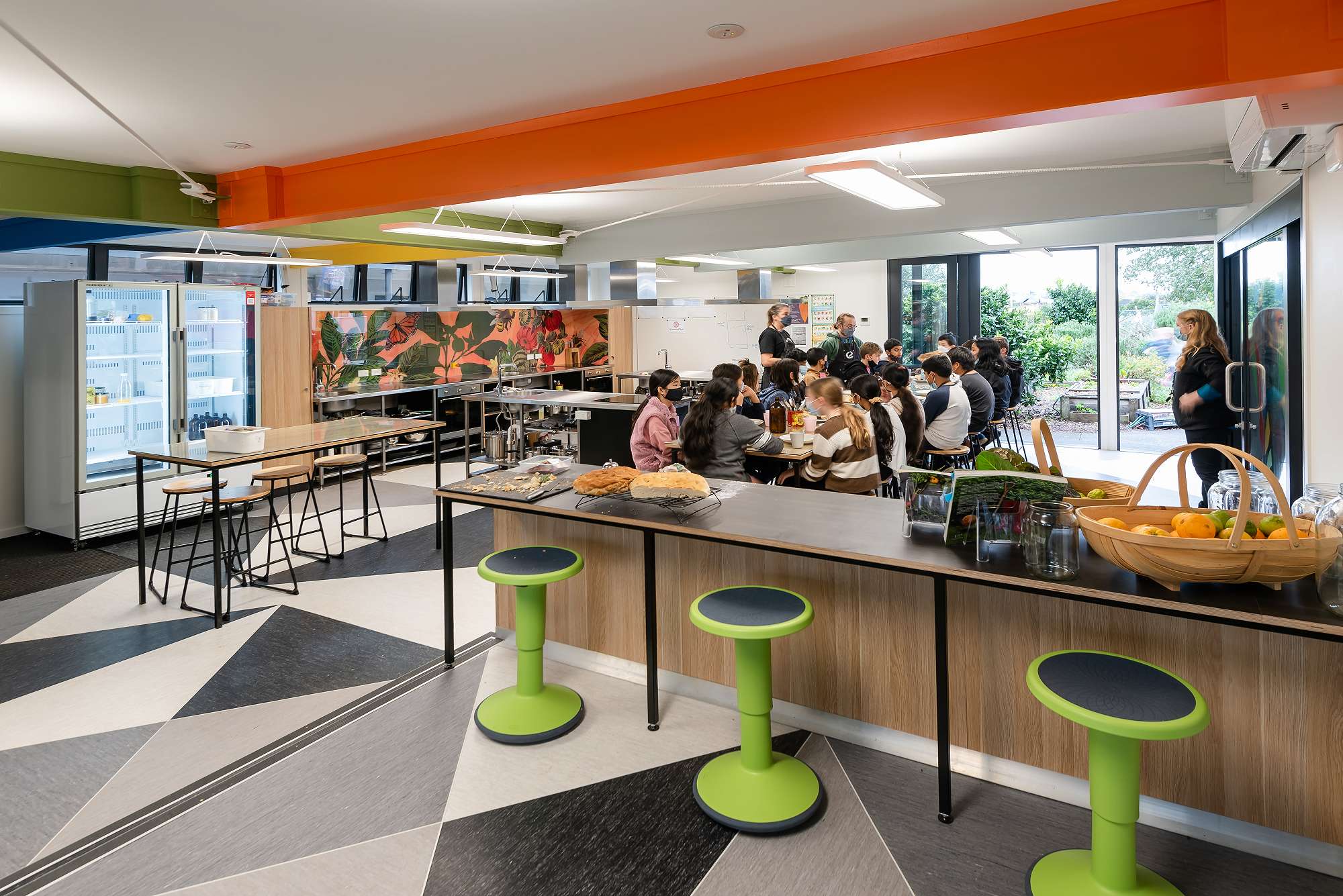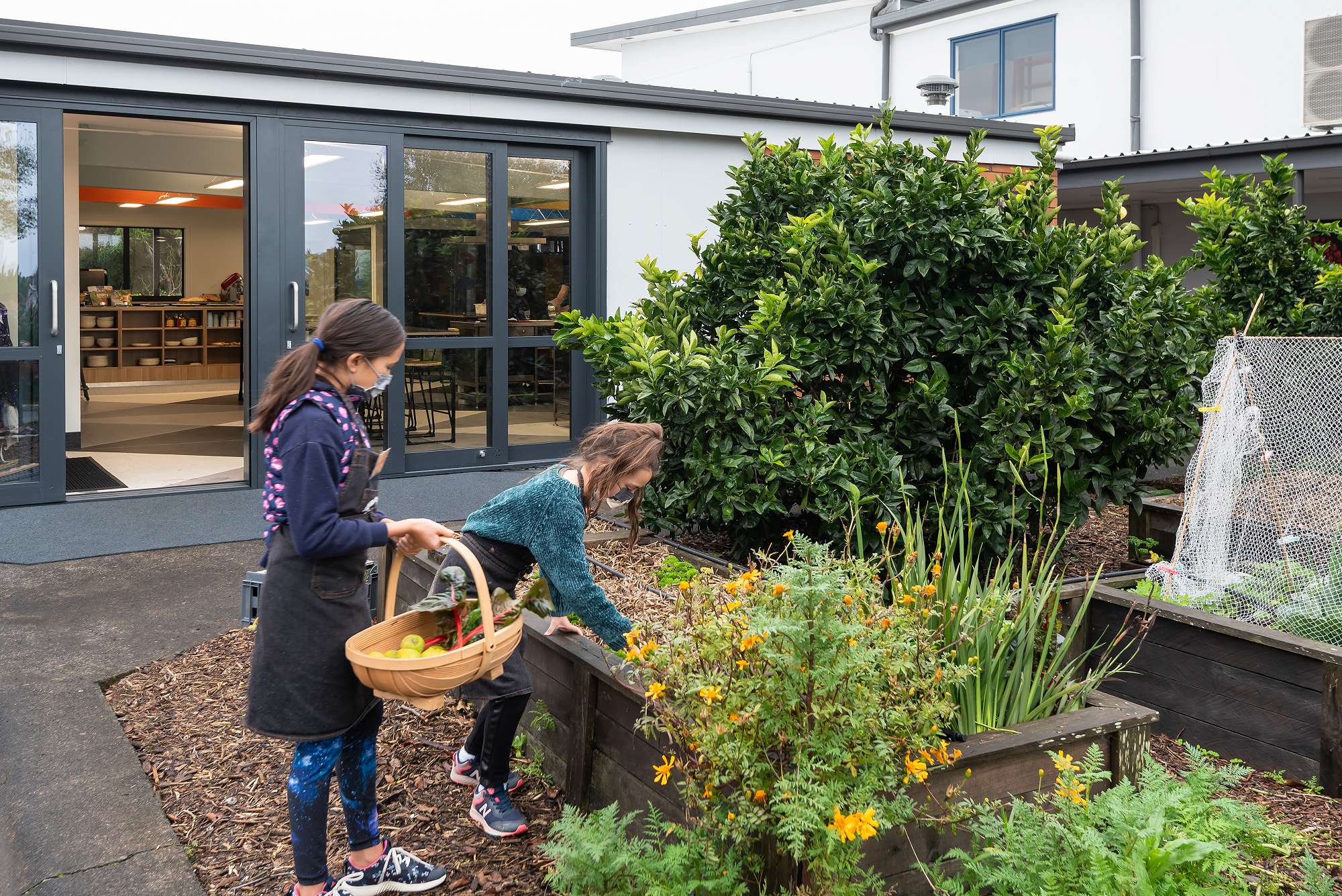 At Edendale School in Auckland, the Garden to Table programme has been a flagship programme for many years. It was initially run by volunteers out of a spare classroom. However, when a block of classrooms was being remodelled, the Tumuaki, Jonathan Ramsay and Tumuaki Tuarua, Jonathan Jackson, saw the opportunity to design a purposeful space for this highly popular meaningful and authentic learning programme. The finished space was the overall winner of the 2022 LENZ Award.
