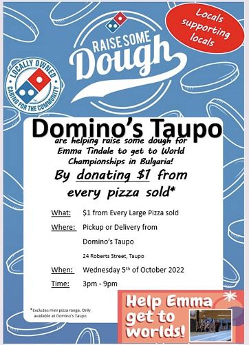 Congratulations to our Year 12 student Emma Hampson-Tindale, who is off to Bulgaria to represent NZ at the Gymnastics World Championships. Her Givealittle page is below for anyone in the Tauhara community would like to show their support, or see the Domino's Taupo fundraiser below.