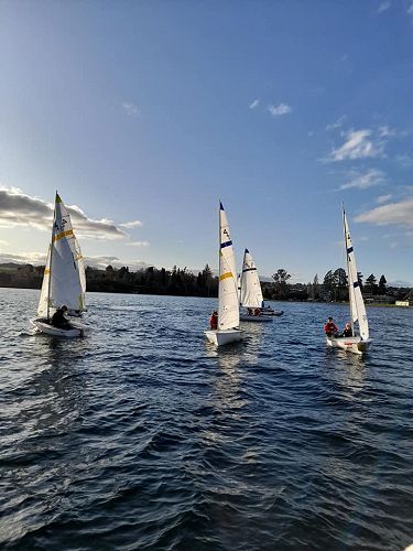 Tauhara College sailing team showing commitment practicing for the National 420 competition in October on the coldest day of the year!