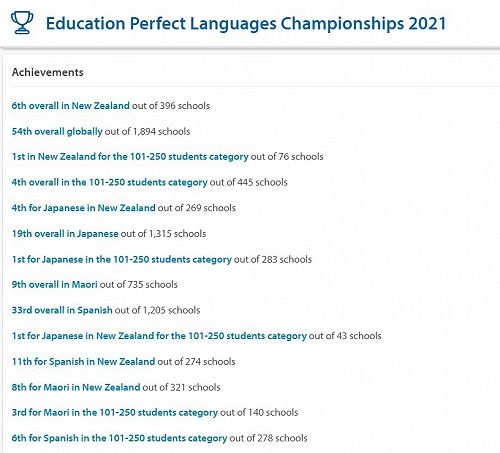 Our top students, Steven Nuth and Francis Humby made it to NZ top 3 in Japanese, Harrison Pointon made it to NZ top 5 in Māori. In addition to this, Steven made it to the World ranking Top 50 overall. An excellent achievement.