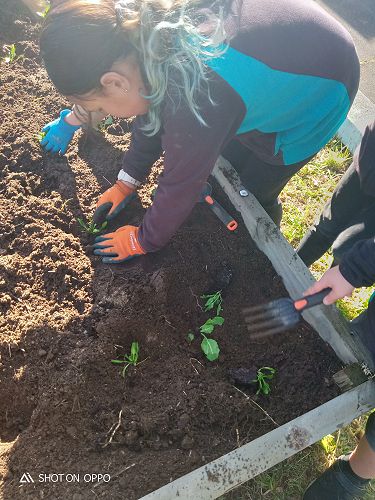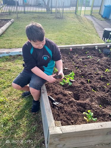 This morning Whaea Shelley and a group of seniors planted their veges and herbs.