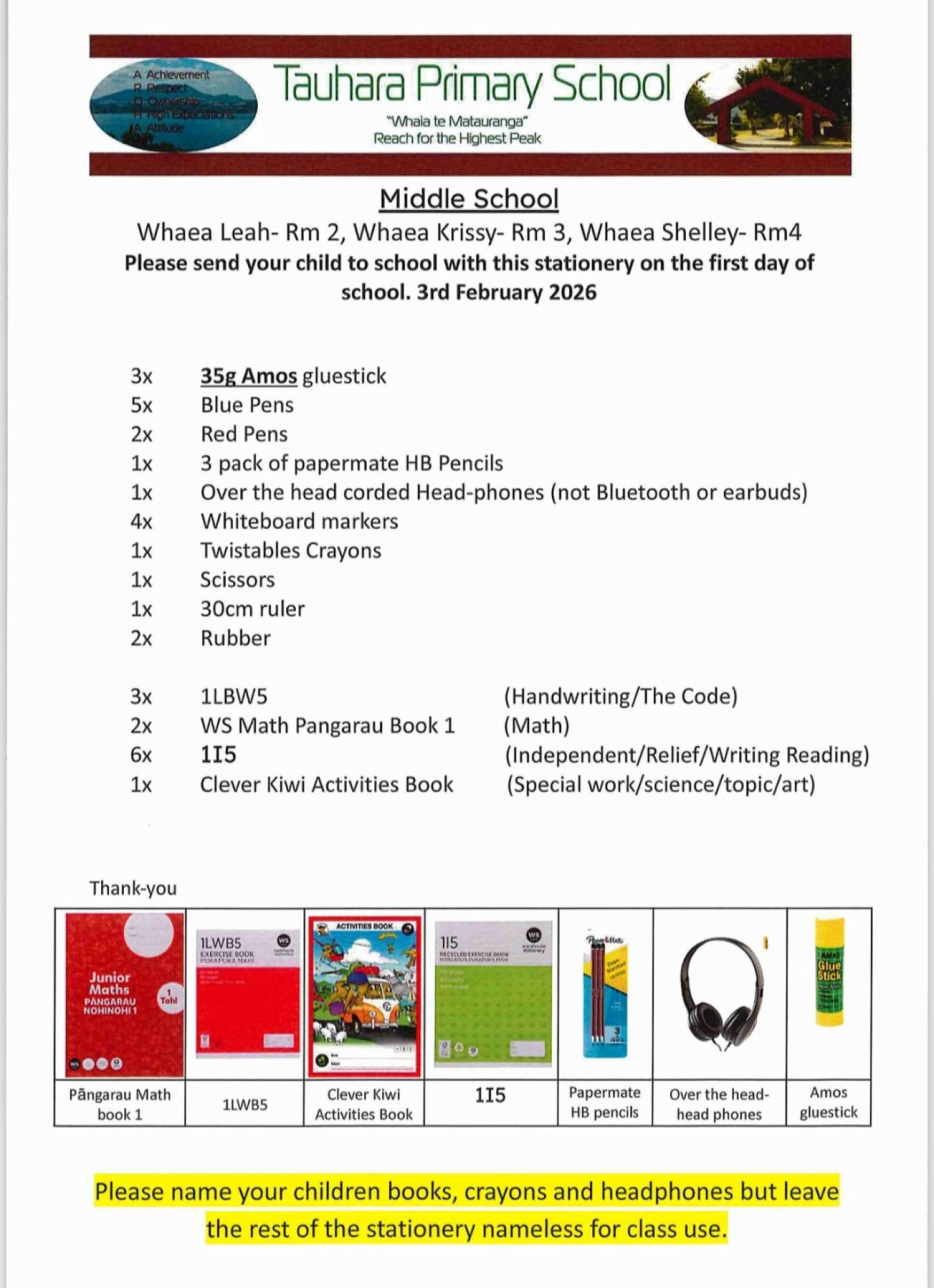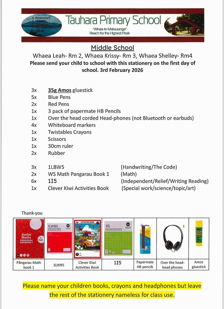 Middle School - Year 3 and 4 Tauhara Primary — December 16th, 2024 Whaea Leah room 2, Whaea Krissy room 3, and Whaea Shelley Room 4