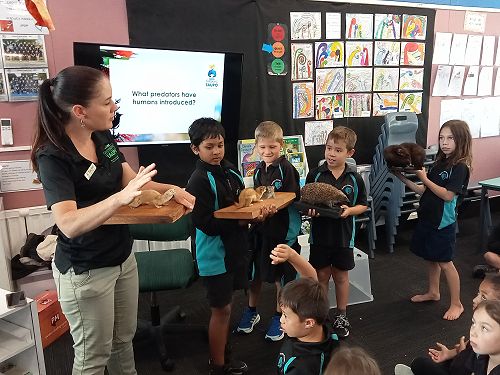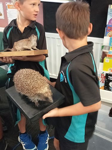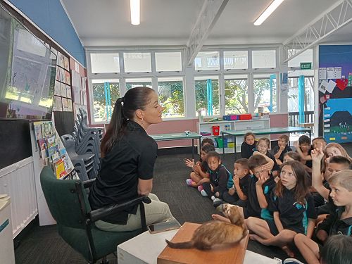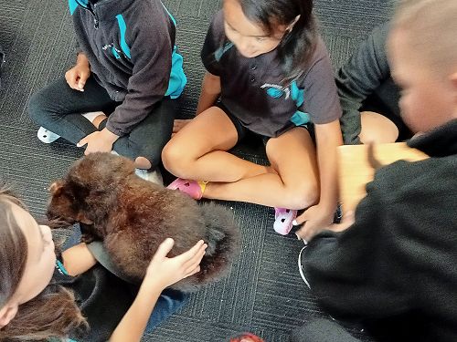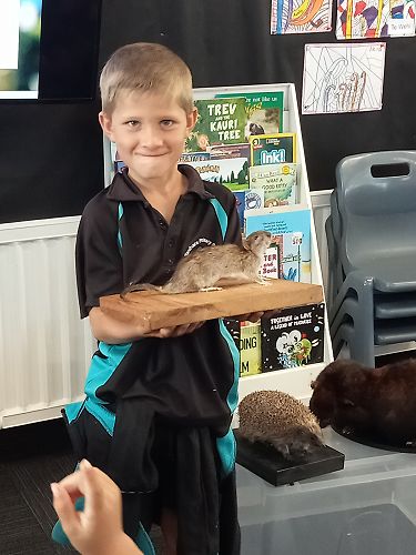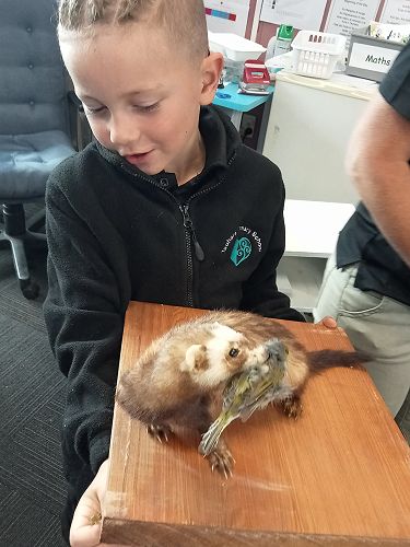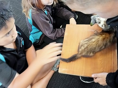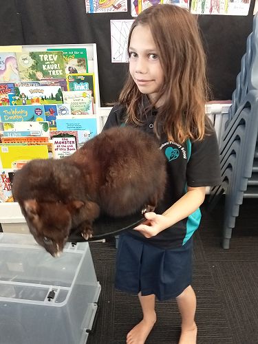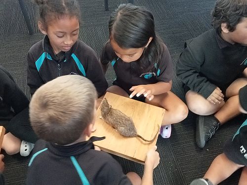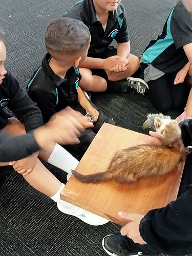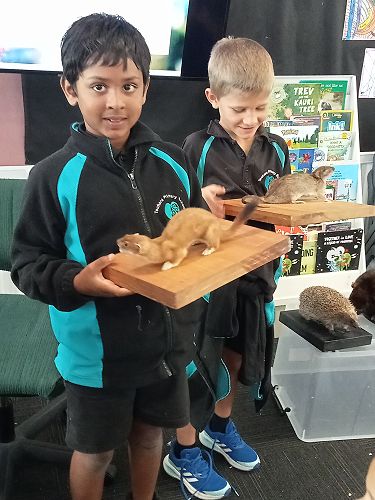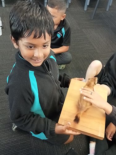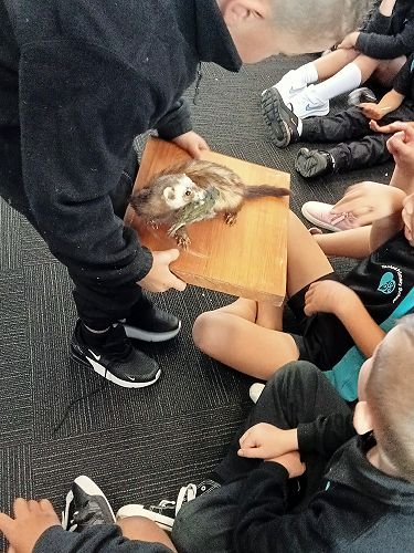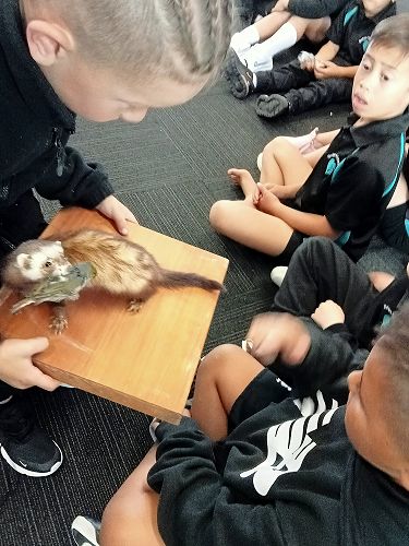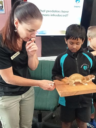 She brought in some taxidermied predators such as a ferret, stoat, possum and a hedgehog. We learnt that Mount Tauhara has many predators - even feral cats! They kill and eat our kiwi and bats.