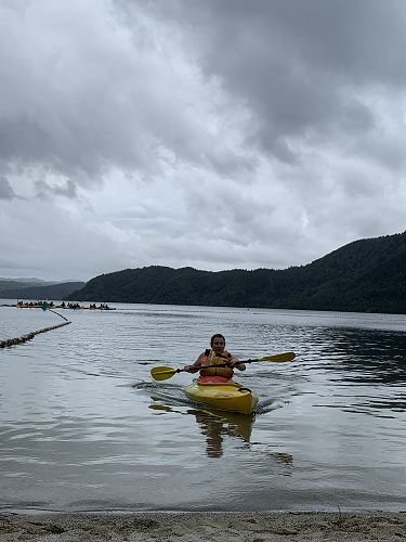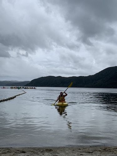 I stood halfway up the hill listening nervously to the instructors. “You will first need to pull your kayak into the water, once it’s floating you can hop in” they explained. It was now or never. I was ready, the calm, still water welcomed me. I slowly waded through the shallows, as the ombre kayak slid effortlessly into the water. I jumped in, rocking it side to side as the lake glistened. Crystal clear water. Beautiful lake. Serenity.