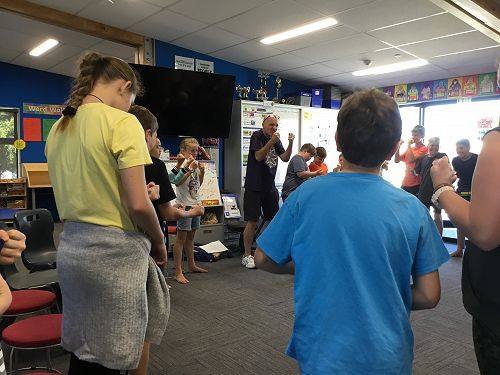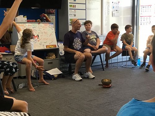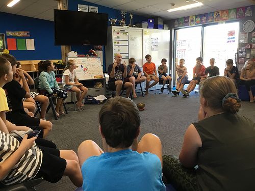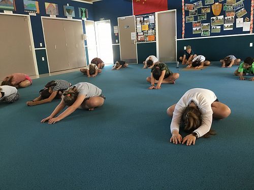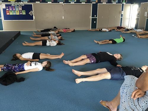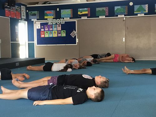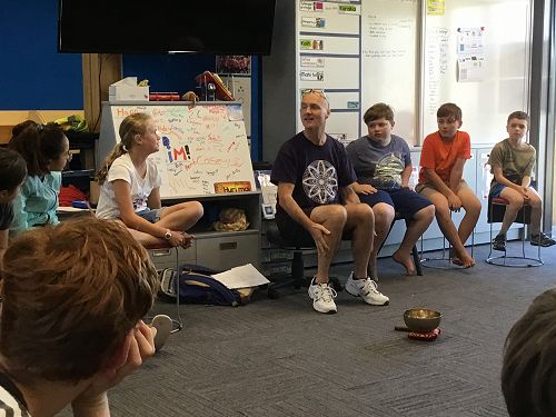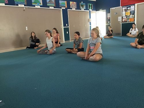 Every Tuesday afternoon after lunch this term, the Year 8s go to the P.A.C. (Performing Arts Center) to do yoga, while the Year 7s stay back in the Tall Poppies classroom to learn mindfulness with John from Breathworks.
