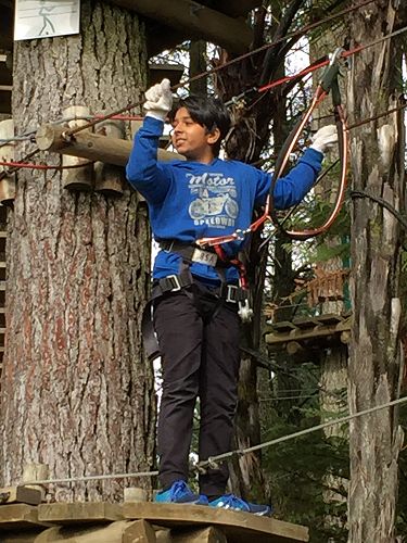 Each level had their own difficult obstacle. As we went up, the levels got harder and harder. Each level had its own perk to it. Each obstacle was difficult because they could spin, turn and move and each level was stuck to trees from any corner. If we wanted to get across, there were bridges and zip lines and steps to go across, down or up. When we got to each platform we unclipped our hook’s for a brief moment then clipped them to the next rope.
