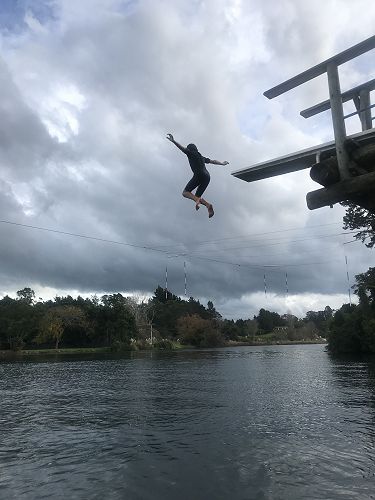 The fun things the Tall Poppies did at Waimarino were: going down the hydro slide, kayaking, jumping off the high diving board, playing volleyball, the Tarzan swing, blob and low ropes (a good warm up for Adrenalin Forest).