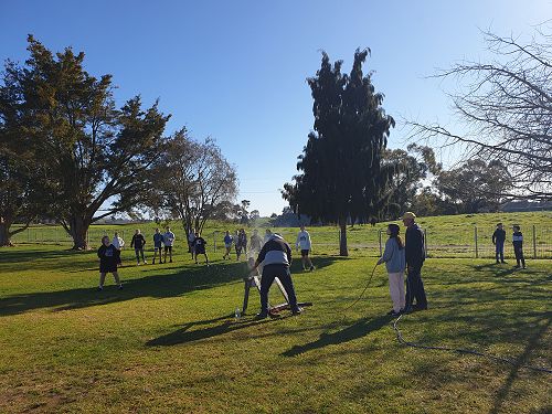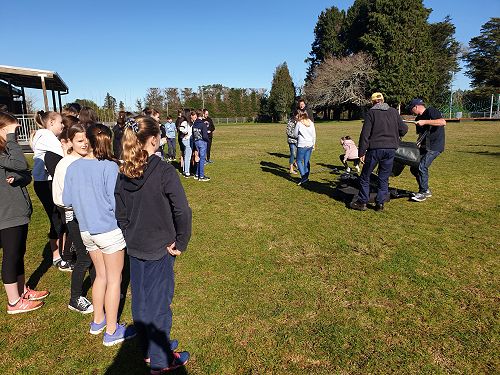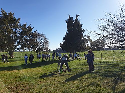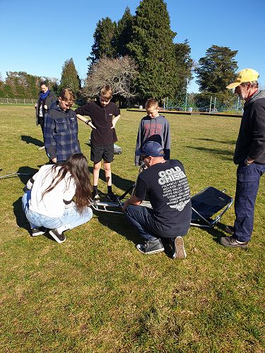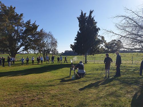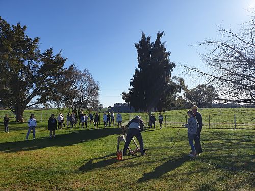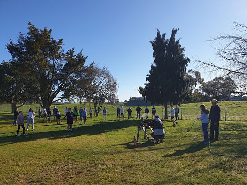 At home, Garth, with his sons Luke and Regan, had drilled a hole in the bottom of the shell so that he could then run an air compression hose through it. Out on the back field at school, he then put an attachment onto the hose so he could connect it to the half-filled plastic bottles. The way it worked was he would fill the bottle with compressed air. A bottle builds up pressure and needs somewhere to go, so it would explode up and out of the artillery. After checking how safe it was, some of the Tall Poppies tried to catch the ‘rockets’ (aka bottles) as they came back down. Later, the Tall Poppies also started experimenting with what would happen if we filled the bottles all the way full, half full or quarter full. The results showed that the bottle filled quarter full worked best because it has more space to build up air pressure.