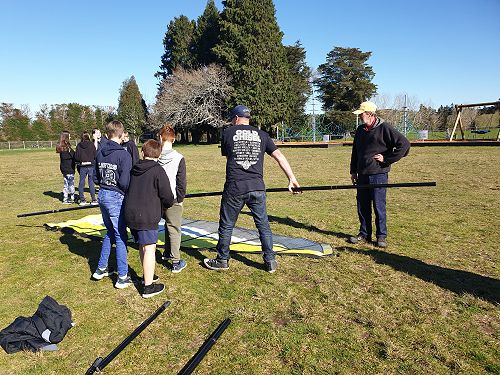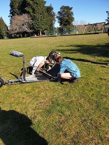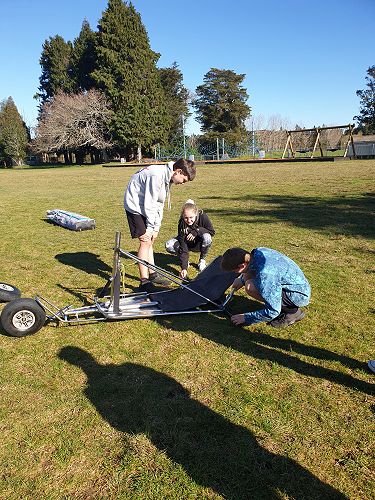 We found out blow karts were invented in Papamoa by a company now called Blokart International. The company started as a very small company innovating on the idea of land yachts and land sailing. Now the company is a very big company and sends their karts all over the world. Garth brought in his blokart. The Tall Poppies organised ourselves into groups of 3 and we worked together to build the blow kart with Garth’s guidance. We built the base, the sail, then put them together. There was not enough wind on the day for us to drive the blow kart on the back field, so we came up with the idea for two Tall Poppies to push the cart, acting as ‘wind’, while a third Tall Poppy sat in it and steered.