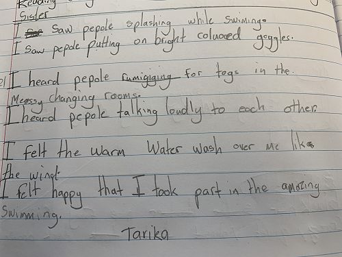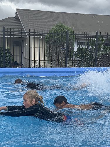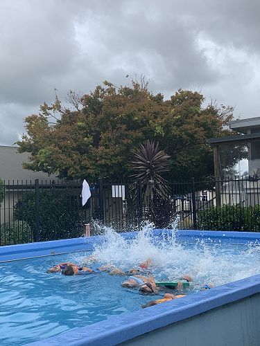 Ready! Set! Go! We were off in a splash. We had many different races to have a go at. Noodle horse races, freestyle, dolphin diving, streamline gliding on our front and backs and many more. There was cheering and chanting. Rooms 5, 6 and 7 students had such a positive attitude even though things had changed. They made themselves and their teacher proud.
