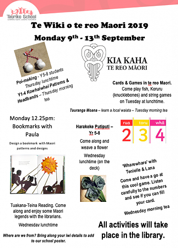 From Monday 9th to Friday 13th of September we will be celebrating Maori Language Week.