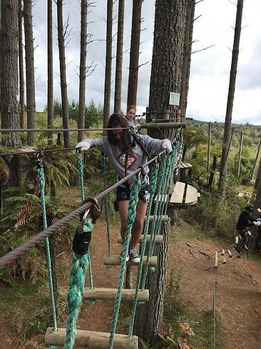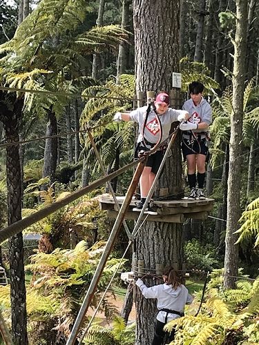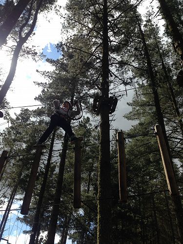 On Wednesday, we went to the Adrenalin Forest. Adrenalin Forest is a multi-level aerial obstacle course, built up into the treetops. We were kitted out with harnesses, went through the safety briefing to learn how the clip system worked, and started to climb. It’s all based on ‘Challenge by Choice’, so we all tested our boundaries to see how far we could challenge ourselves.