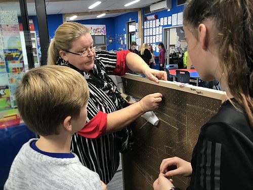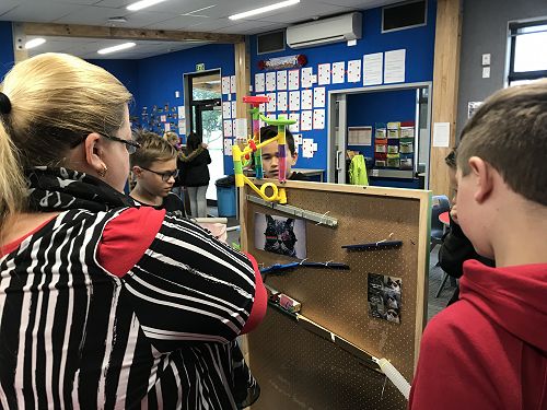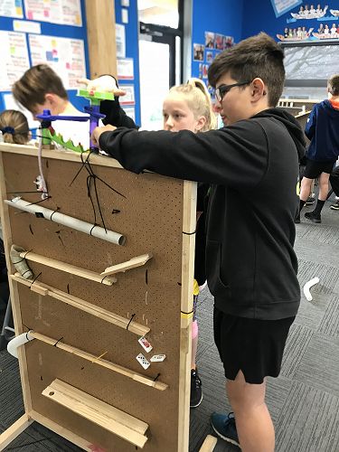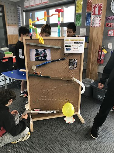 As part of the Young Innovators Challenge our Tall Poppies have been busy designing and building Rube Goldberg machines. In teams, the students identified a customer and a problem and designed an innovative solution to that problem. The goal was to pop a balloon in the most complicated manner possible, using and identifying the energy involved at each step.