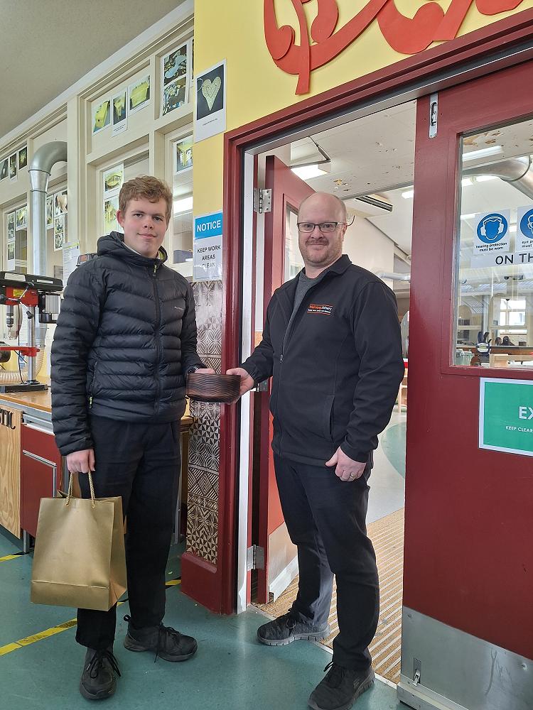 Congratulations to Year 12 student Trent Swaine, winner of the bowl carving competition supported by ‘Well Hung Joinery’, based in the Ngauranga Gorge. Stephen Fairbass, Manager of Well Hung Jointer, chose Trent's bowl for the form that he had carved and the quality of his finishing work.