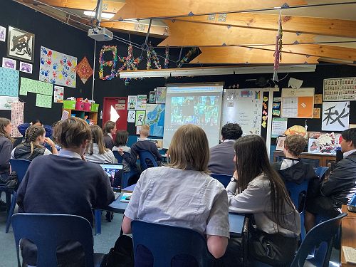 Recent graduate Elias Martin is at Hannan High, our sister school, for three months assisting with the English programme in Ōsaka, Japan. Thanks to this connection, our Year 10 Japanese class was able to connect with Hannan High via Zoom to practice our Japanese in a genuine and authentic way. Photo below is Elias standing with Kaho, the assistant teacher from Hannan, who came earlier this year to support our Japanese program. This exchange of assistant teachers has been continuing for over a decade between our two schools.