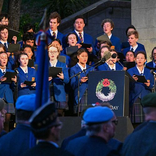 Visit this articleThe Tawa College Blue Notes choir performed at the televised Dawn Service on Anzac Day at Pukeahu National War Memorial in Wellington, accompanied by the Royal New Zealand Air Force Band.