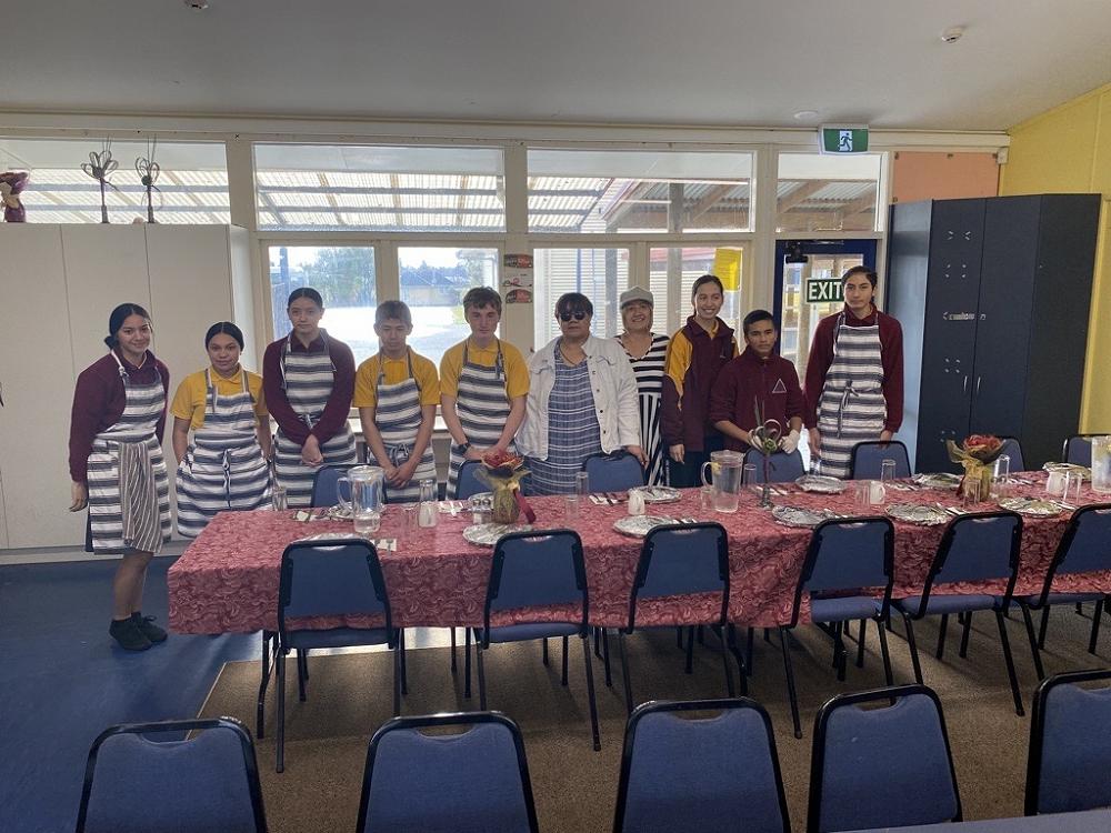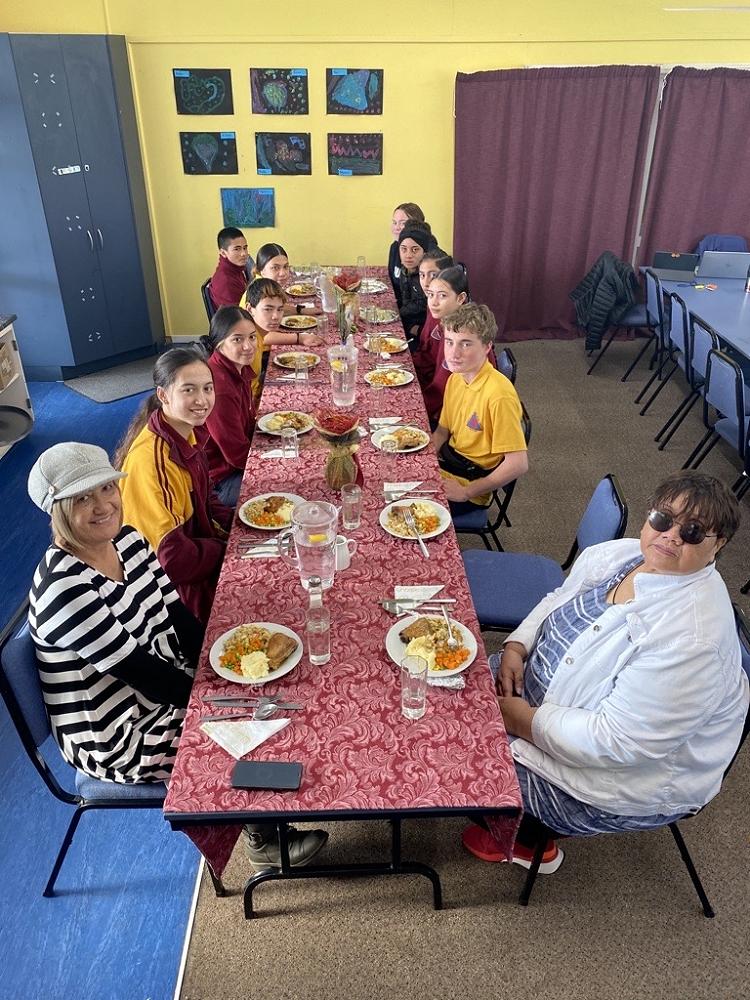 Manaaki Manuhiri is an integral subject for Uri Tau 9-11, as they can also gain NCEA credits. Te Kiri o Tūī have been working hard learning new skills throughout the term culminating in preparing a meal to present to manuhiri. Last week, Te Kiri o Tūī welcomed Whaea Marewa, Whaea Tina, and Matua Johnny to be their manuhiri, and to thank them for their support in the English Reading Programme. Te Rautāwhiri joined the manuhiri as well and their feedback was appreciated. Manaaki Manuhiri is an awesome kaupapa where Uri can draw on different skills that are inherent within their whānau, while also getting credits for their mahi!