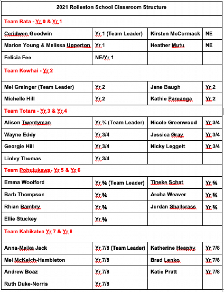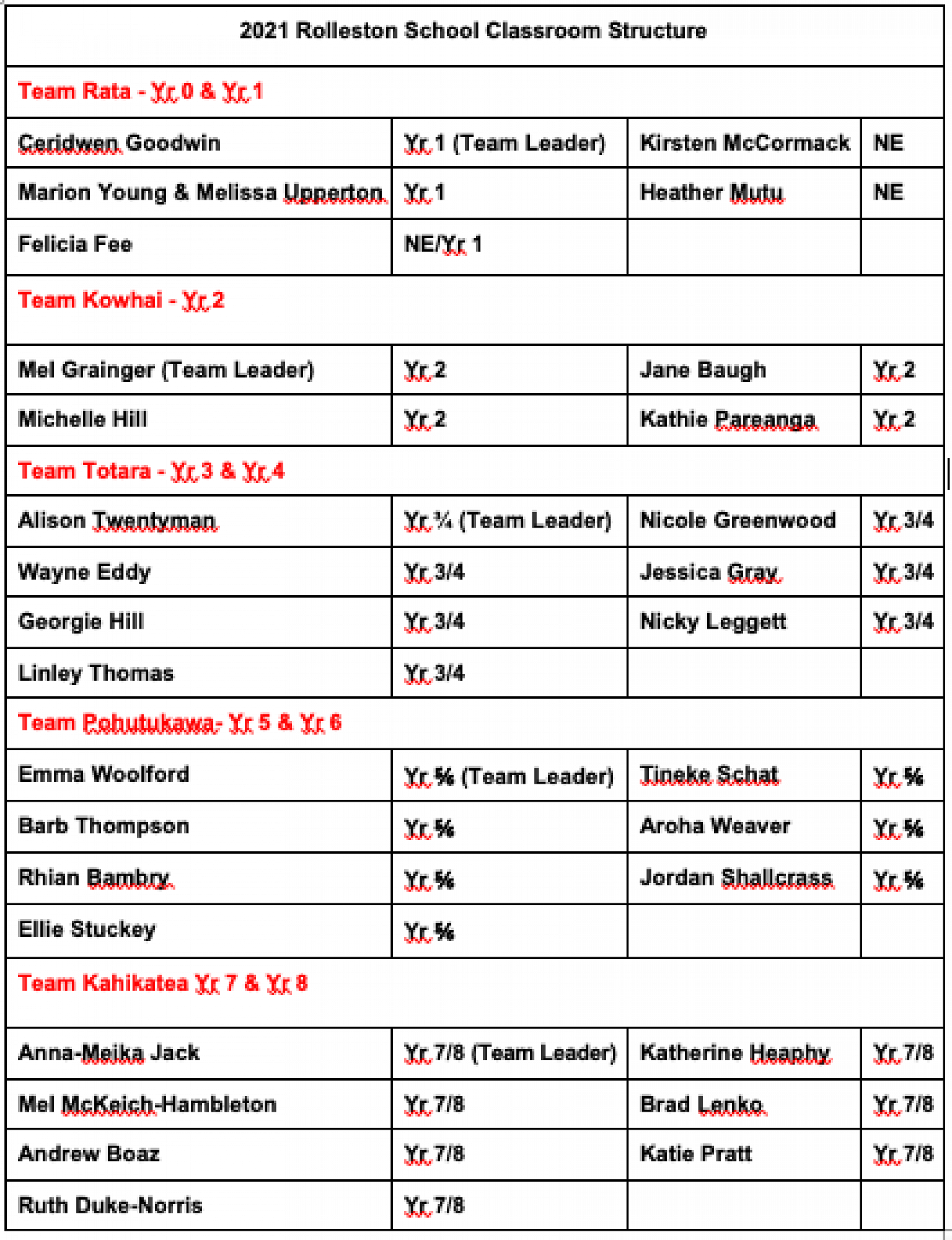 We will communicate the classes the teaching team will be working in prior to the end of the 2020 year. We are incredibly excited about the 2021 teaching team and the opportunities and skills we can offer the students of Te Ahi Kaikōmako Rolleston School.
