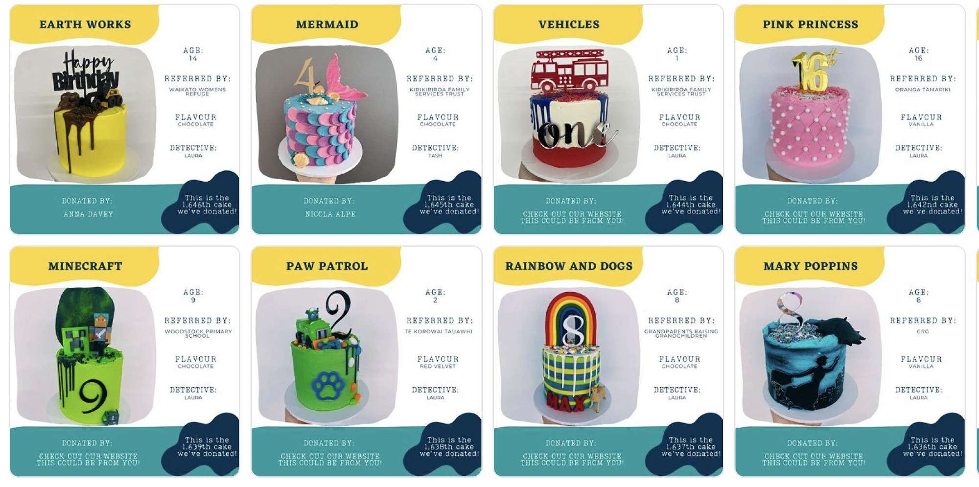 The Cake Detective donates birthday cakes to kids in the Waikato going through hardship. They work with a range of social agencies supporting those impacted by illness, poverty, hardship, abuse & trauma.