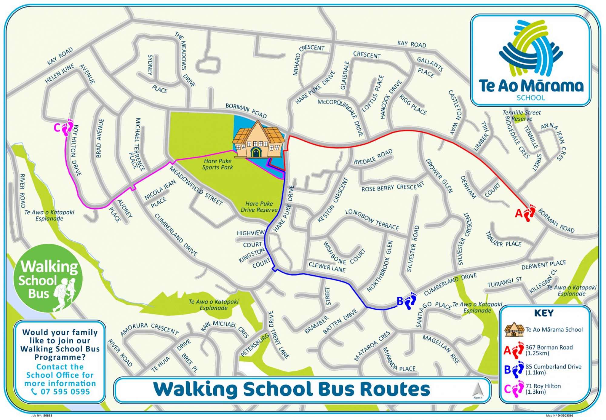 If you would like to join one of our Walking School Bus Routes, please email Miss Olivia (olivia@teaomarama.school.nz) & let her know which Route you will join (A, B or C).