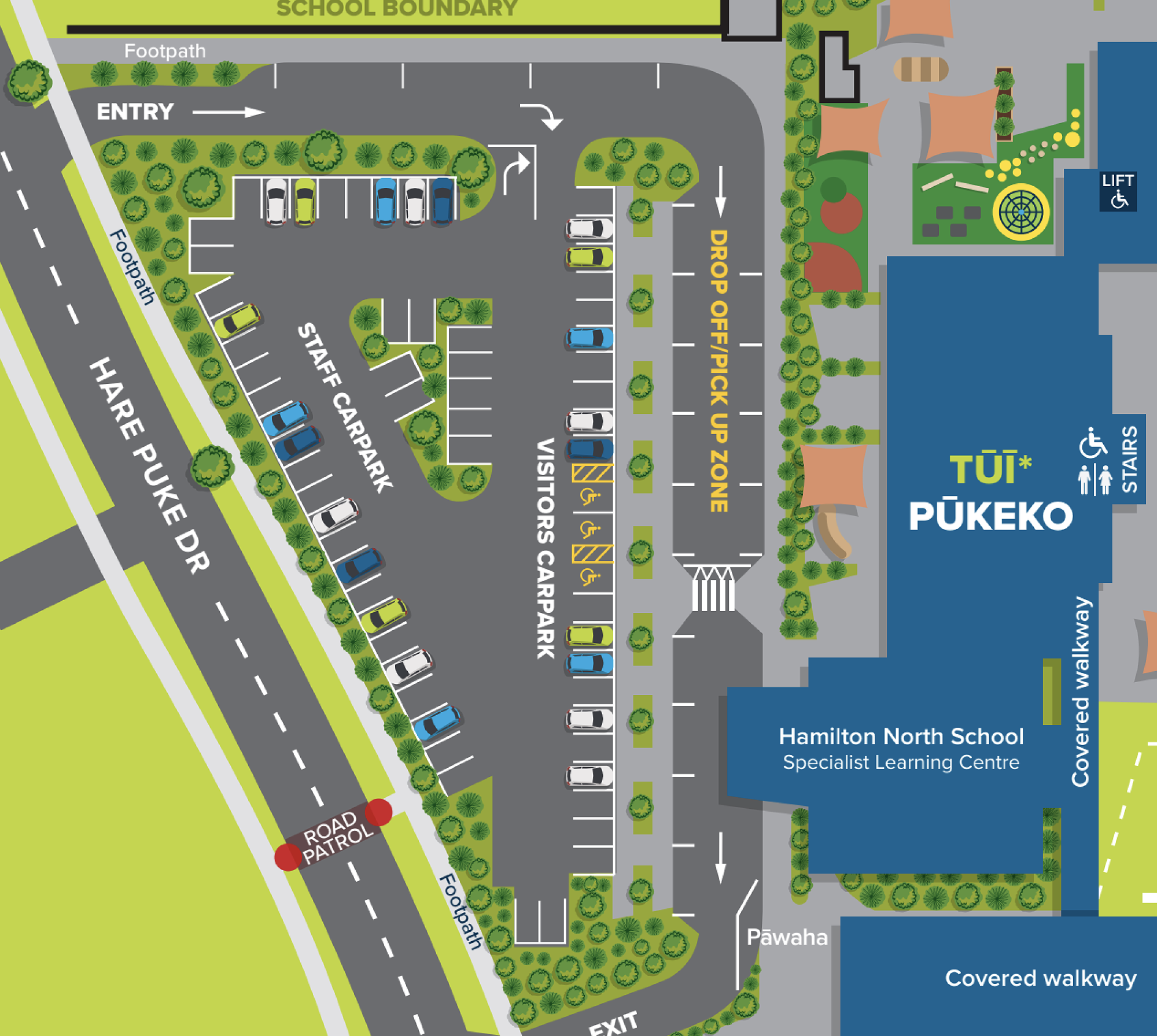 Hamilton North School have students with physical disabilities & they need this park available at all times. Note: there are also three disability parks in our main carpark for vehicles displaying a mobility parking permit.