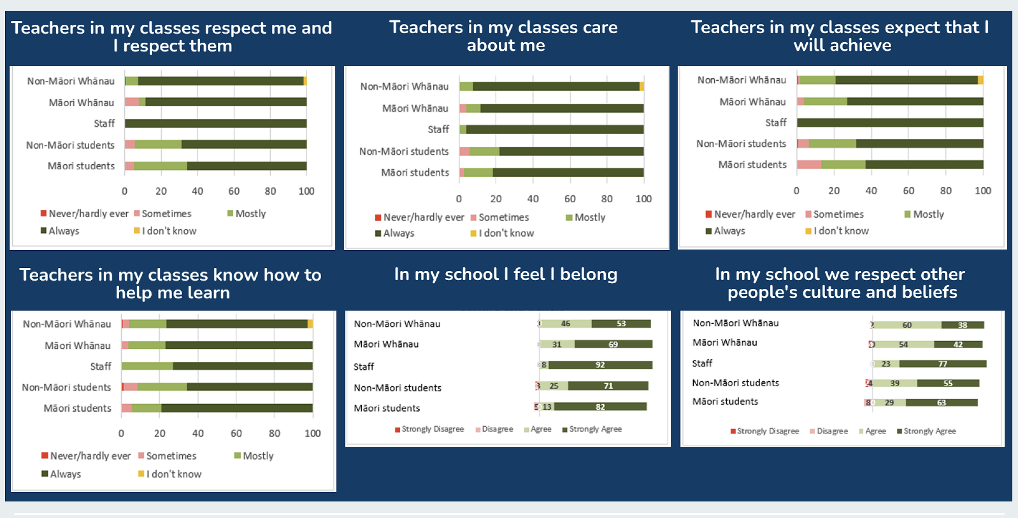 A key part of the survey analysis was to compare whether there is a difference in experience between our Māori students/whānau & our non-Māori (as this is often the case in many schools/educational settings).