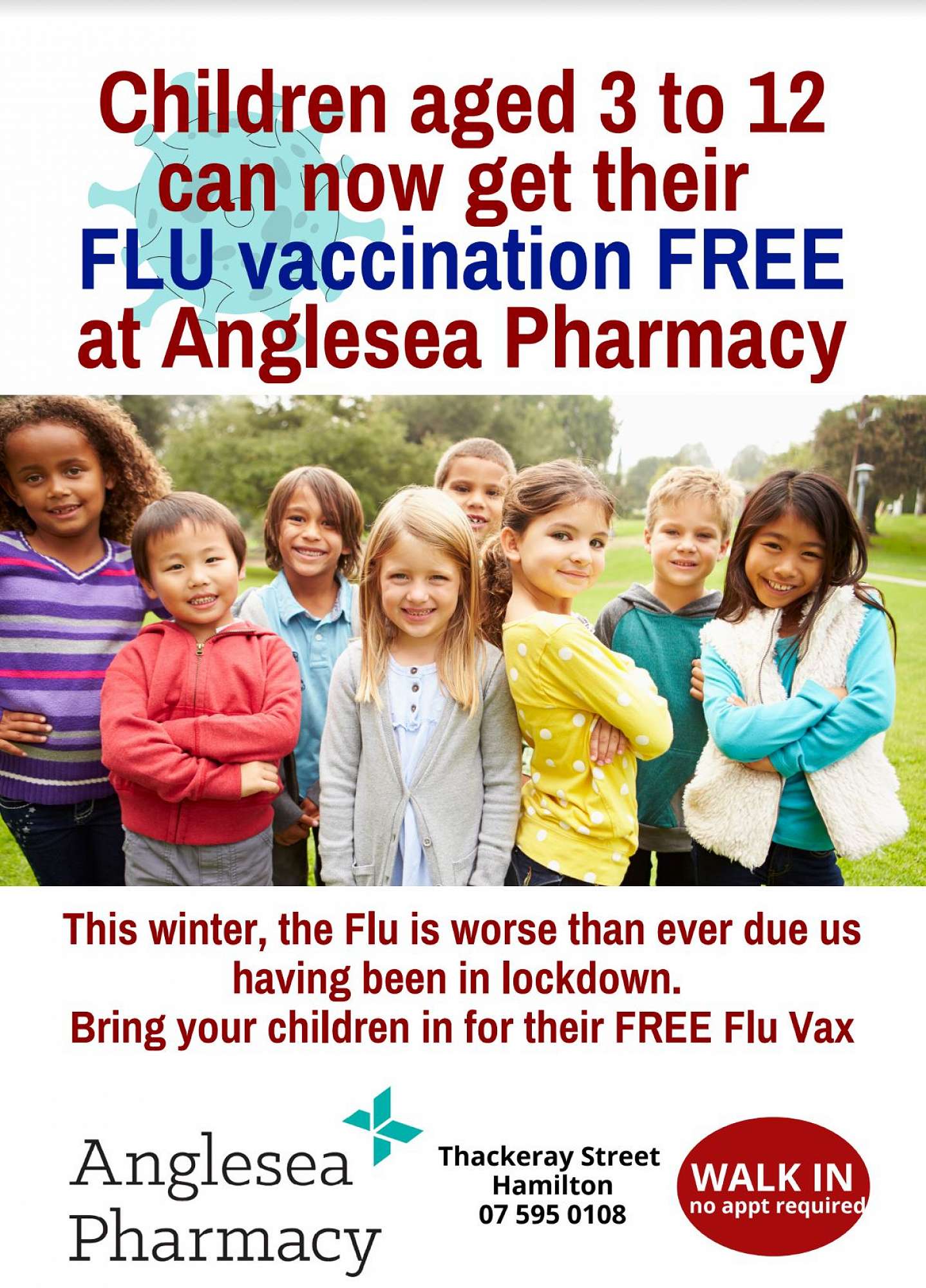 For those who are unable to make this date, Anglesea Pharmacy are also offering FREE Flu vaccine for children aged 3-12. Walk-in, no appointment required (Monday – Sunday 8am – 10.30pm).