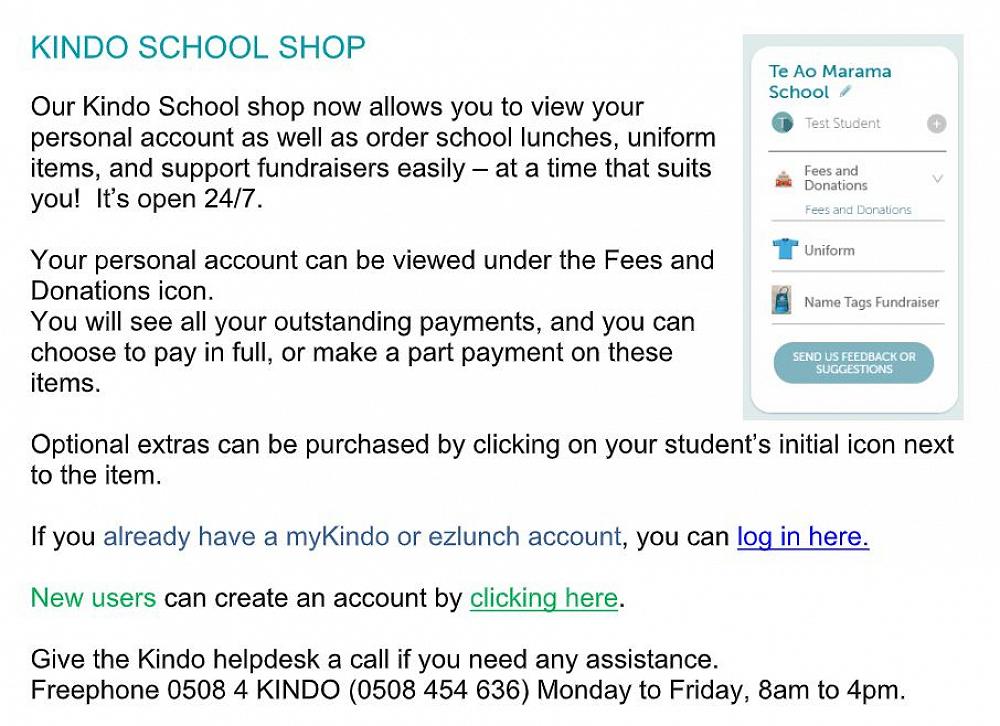 This week, all families should have received an email confirming their child(ren)'s school donation & activity fee was available for payment via Kindo, our online shop.